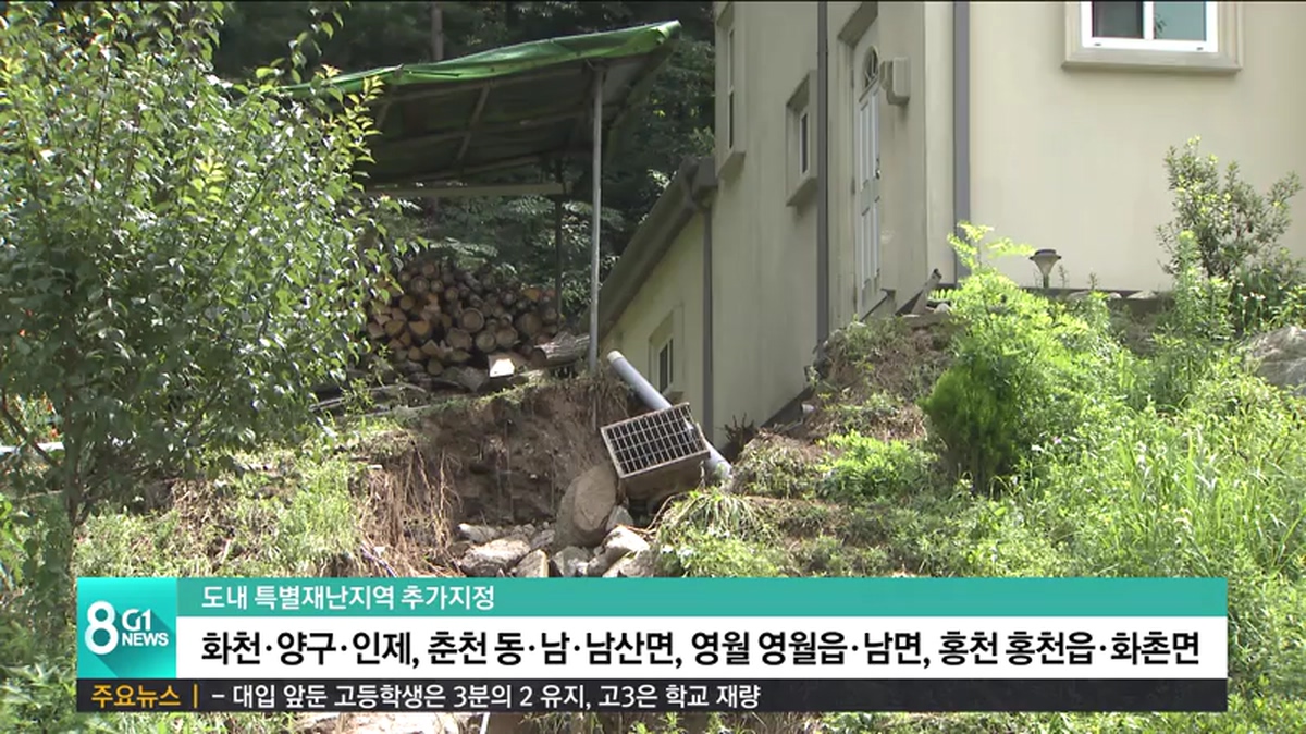 인제군과 화천군·양구군 등 도내 군 단위 지역 3곳과, 춘천 남면·영월 남면 등 7개 읍·면이 특별재난지역으로 추가 지정됐습니다.
