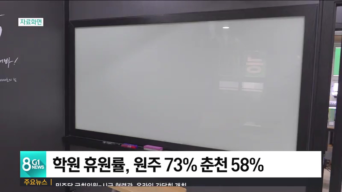 최근 코로나19 환자가 급격히 늘어난 원주는 전체 학원 800여 곳 중에서 580여 곳이 휴원해 휴원률이 73%에 달했고, 춘천은 학원 670여 곳 중 58%만 휴원하고 있었습니다.