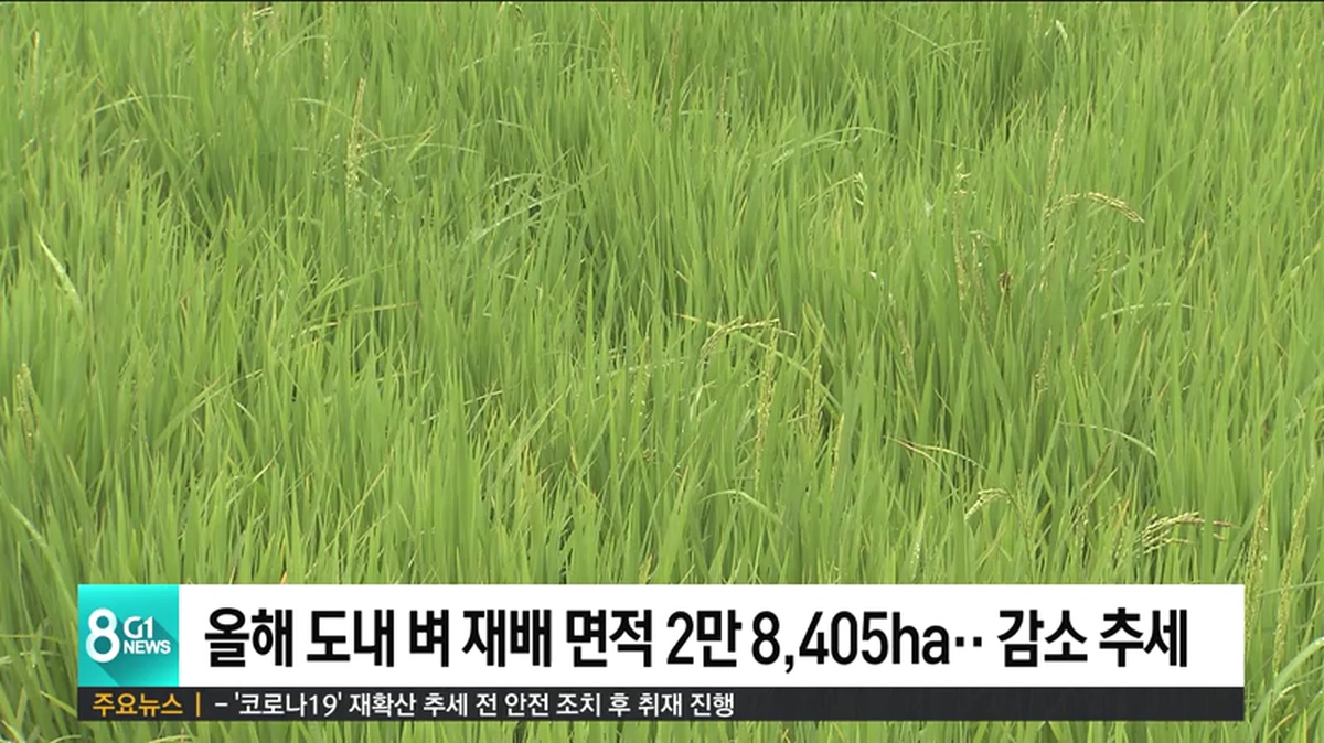 통계청이 발표한 2020년 벼 재배 면적 조사에 따르면, 도내 벼 재배 면적은 지난 2018년 2만 9천 6ha에서 지난해 2만 8천 640ha, 올해는 2만 8천 405ha로 해마다 줄고 있습니다.