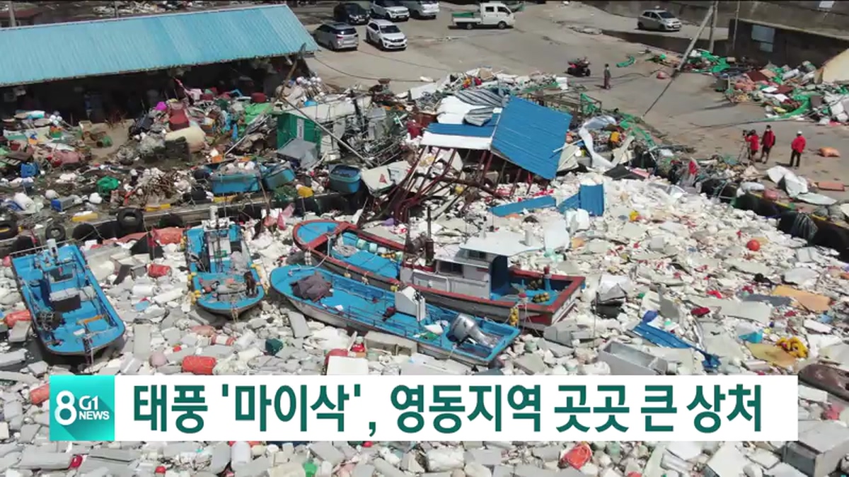 제9호 태풍 '마이삭'이 오늘 아침 동해상으로 빠져나갔습니다. 밤사이 폭우와 함께 강한 바람이 휘몰아치면서 영동지역 곳곳에 큰 상처를 남겼습니다.