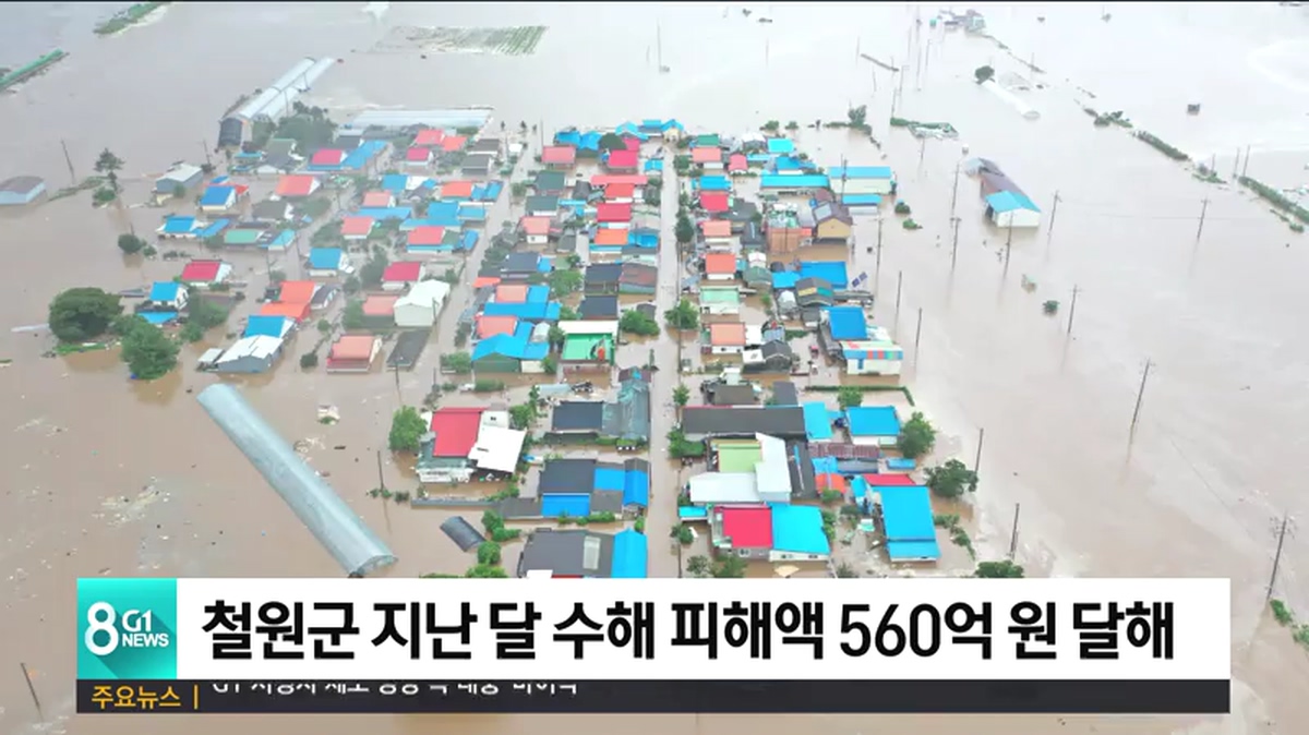 지난 달 초 내린 집중호우로 철원군이 입은 피해 규모가 560억여 원에 달하는 것으로 집계됐습니다.