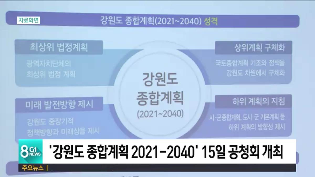 오는 2040년까지 강원도의 미래발전 전략을 담은 '강원도 종합계획'에 대한 도민 공청회가 오는 15일, 강원연구원에서 열립니다.