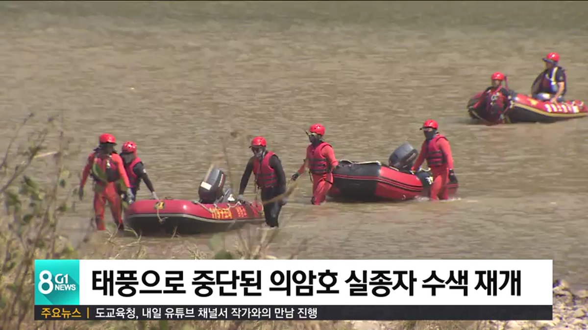 춘천시는 엊그제 제9호 태풍 '마이삭'이 북상함에 따라 이틀 동안 중단했던 실종자 1명에 대한 수색을 오늘 다시 시작한다고 밝혔습니다.