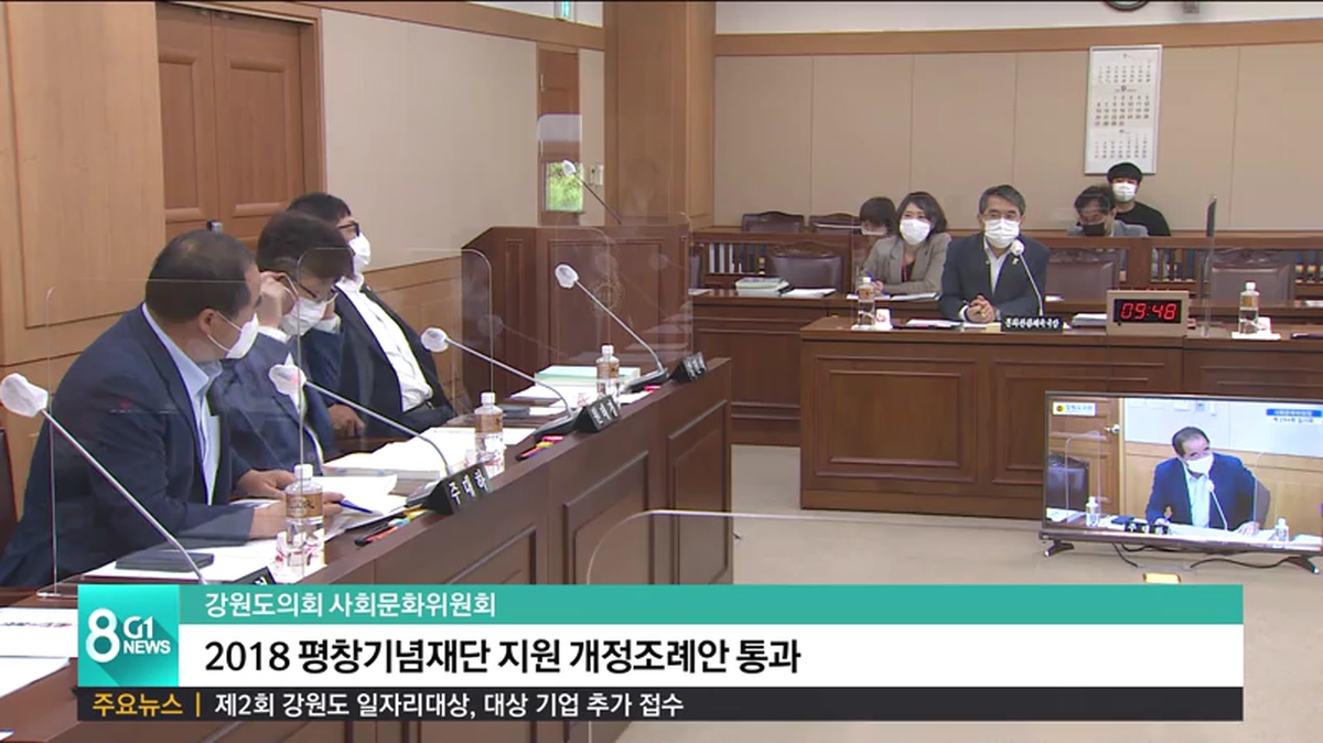 강원도의회 사회문화위원회는 재단법인 '2018 평창 기념재단'을 강원도 출자출연기관으로 지정해 예산 등을 지원할 수 있도록 하는 내용의 개정 조례안을 통과시켰습니다.