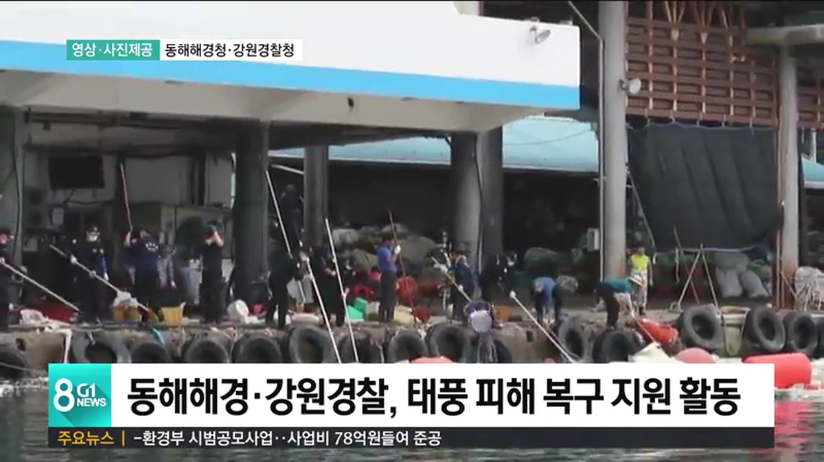 동해지방해양경찰청은 오늘(5일) 오전부터 삼척 임원항 일대에서 부서진 건물 잔해와 가재도구, 떠밀려온 쓰레기와 부유물 제거 작업을 벌였습니다.