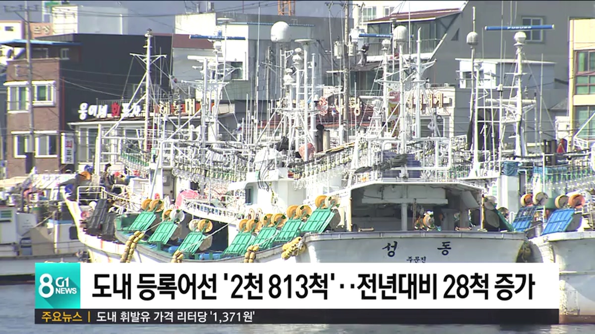 해양수산부가 발표한 2019년 기준 등록어선 통계에 따르면, 지난해 말 기준 도내 등록어선은 2천813척으로 전년에 비해 28척 증가했습니다.