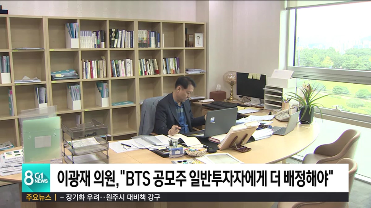 이광재 의원, "BTS공모주 일반투자자에게 더 배정"
