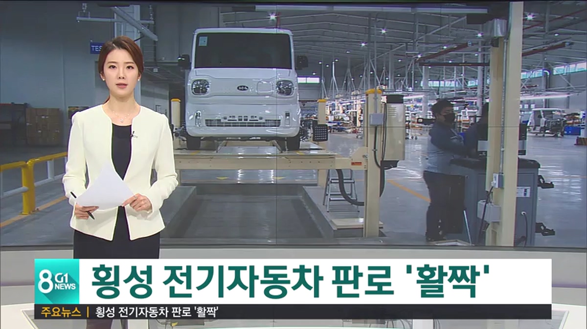 횡성 우천산단에 입주한 전기차 제조업체가 국내 최초로 개발한 초소형 전기 화물차량입니다.