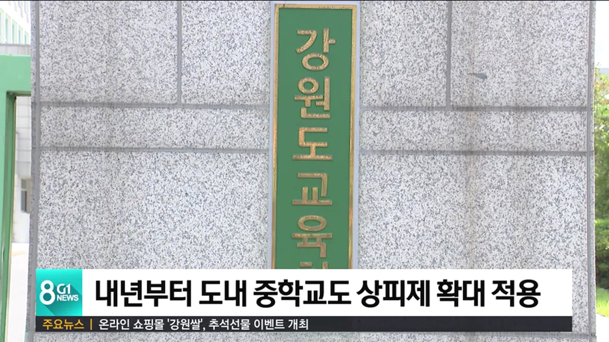 중학교 상피제는 춘천과 원주, 강릉, 양구 등 8개 시·군에 적용되며,