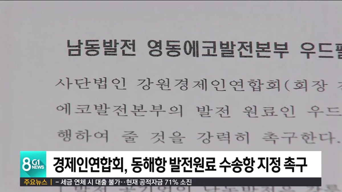 강원경제인연합회와 동해경제인연합회가 성명을 내고 남동발전 영동에코발전본부의 발전 원료 수송 기착항을 동해항으로 지정해달라고 촉구했습니다.