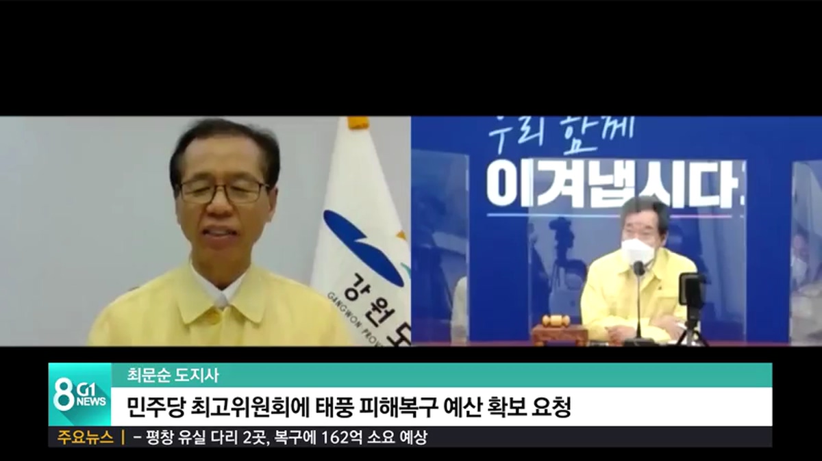 최 지사는 '제5차 민주당 최고위원회' 화상 회의에 참석해 동해안 곳곳의 피해가 큰 만큼 특별재난지역 선포에 힘써줄 것을 이낙연 당 대표에게 공식 요청했습니다.