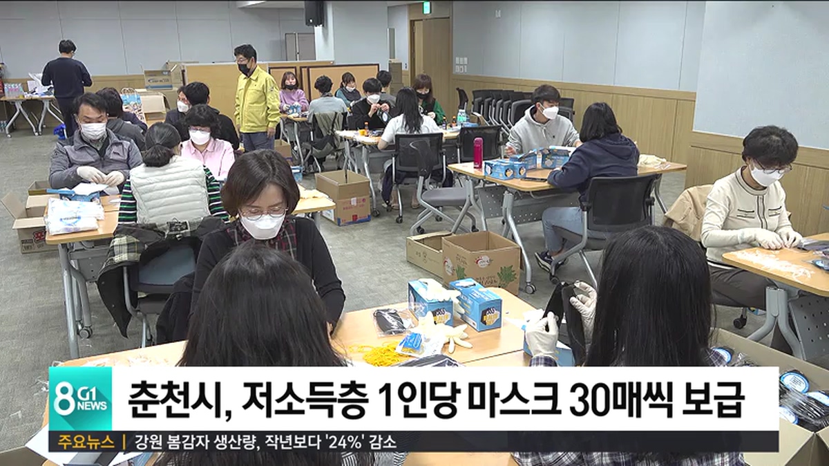 코로나 감염 예방을 위해 춘천지역 저소득층에게 마스크가 무료로 보급됩니다.