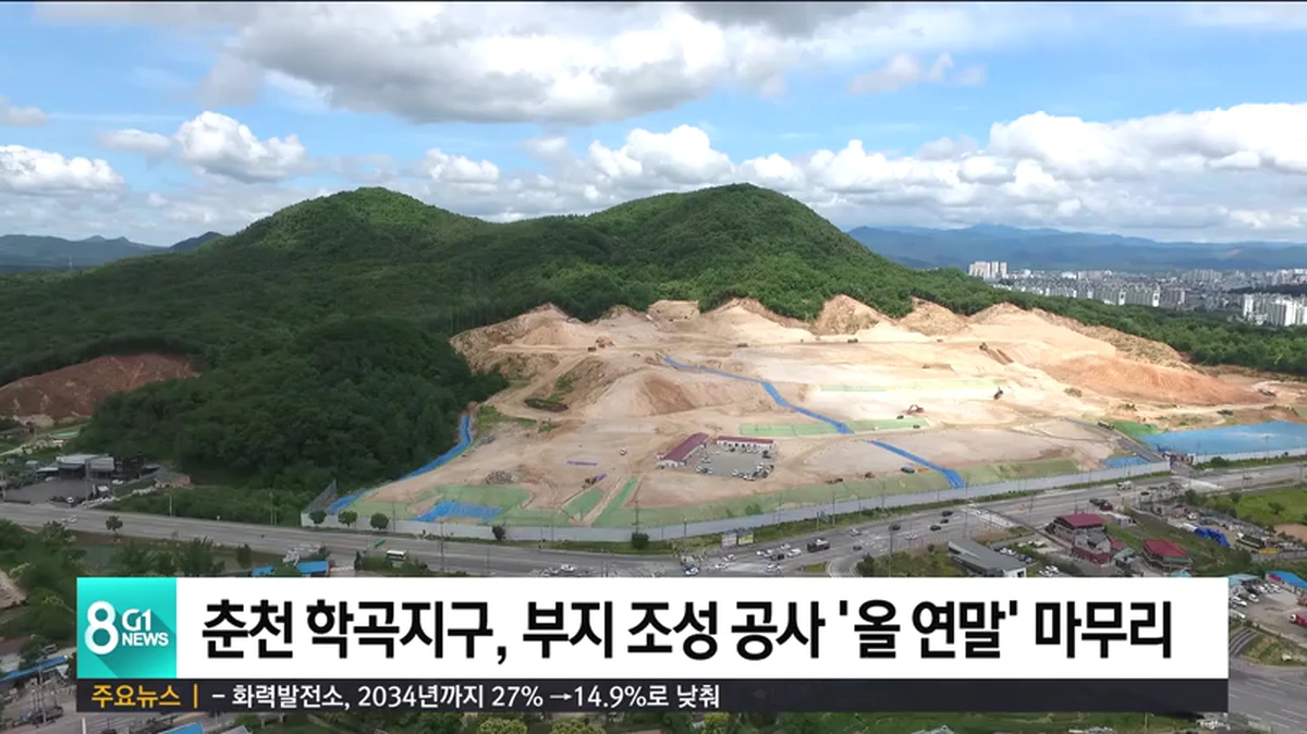 춘천시는 학곡지구 도시개발사업의 부지 조성 공사 공정률은 현재 62%로, 올 연말쯤 마무리될 것으로 보인다고 밝혔습니다.