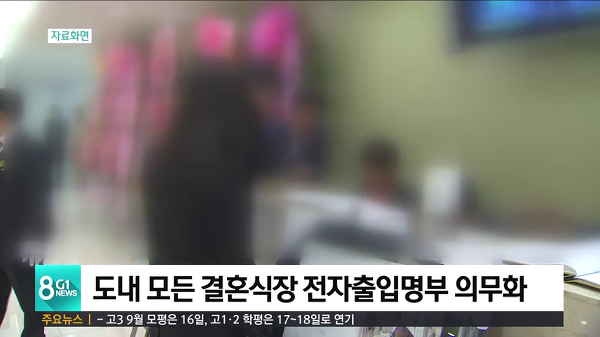 최근 '코로나19' 확산세가 계속되면서 도내 모든 결혼식장에서 전자출입명부 작성이 의무화됩니다.