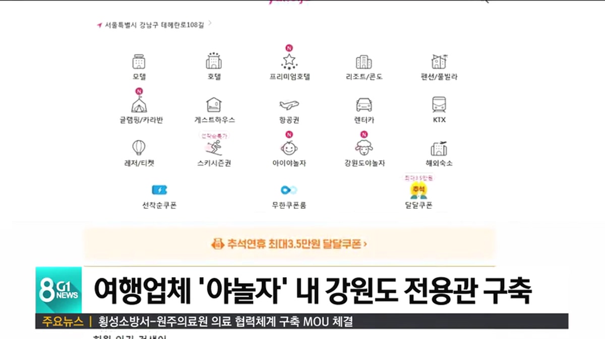 여행업체 '야놀자' 내 강원도 전용관 구축