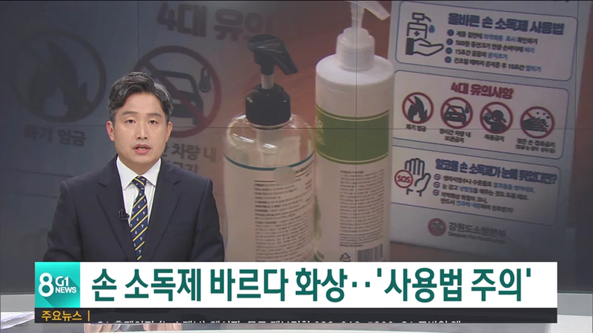 "손 소독제를 바른 손 전체에 불이 붙었어요.