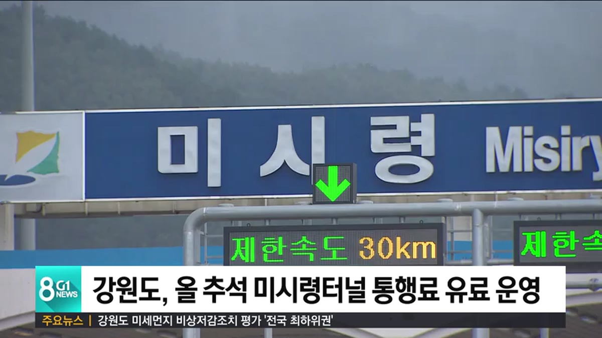 지난 2017년부터 설이나 추석 같은 명절 연휴 기간 무료로 운영되던 미시령터널이 이번 추석엔 유료로 운영됩니다.
