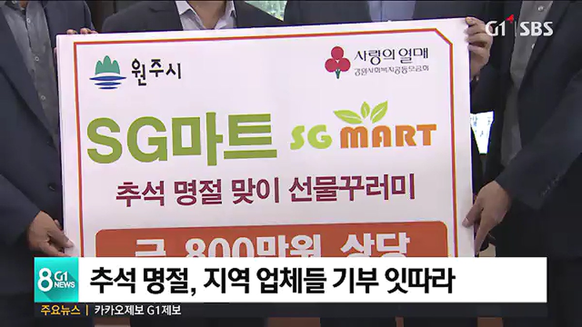 지역 향토업체인 SG마트는 원주시와 횡성군을 차례로 방문하고, 독거노인과 소년소녀가장 등 지역 취약계층을 위해 써달라며 모두 천 200만원 상당의 생필품 세트를 기탁했습니다.