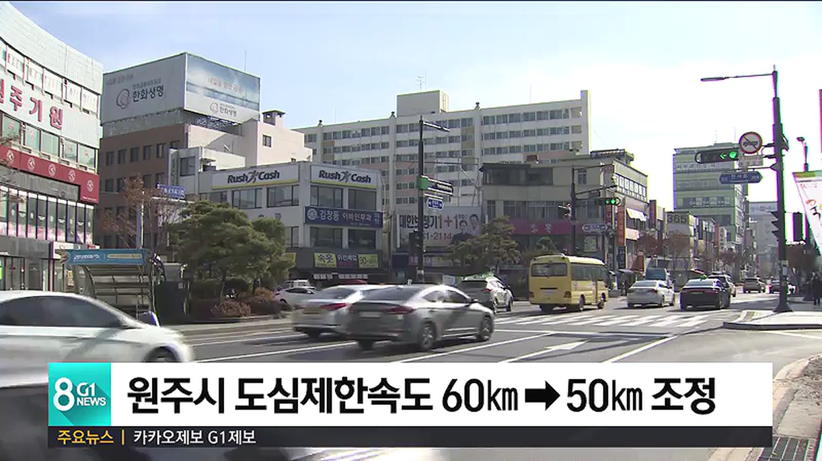 오늘부터 원주시내 도로 제한속도가 기존 시속 60㎞에서 50㎞이하로 10㎞ 낮아집니다.