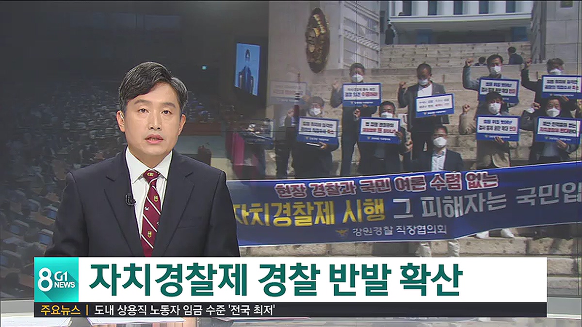 "경기와 충청, 경남 등 전국적으로 반발이 이어지고 있는 가운데, 강원 경찰 직장협의회도 기자회견을 열고 자치경찰제 법안의 폐기를 요구했습니다."