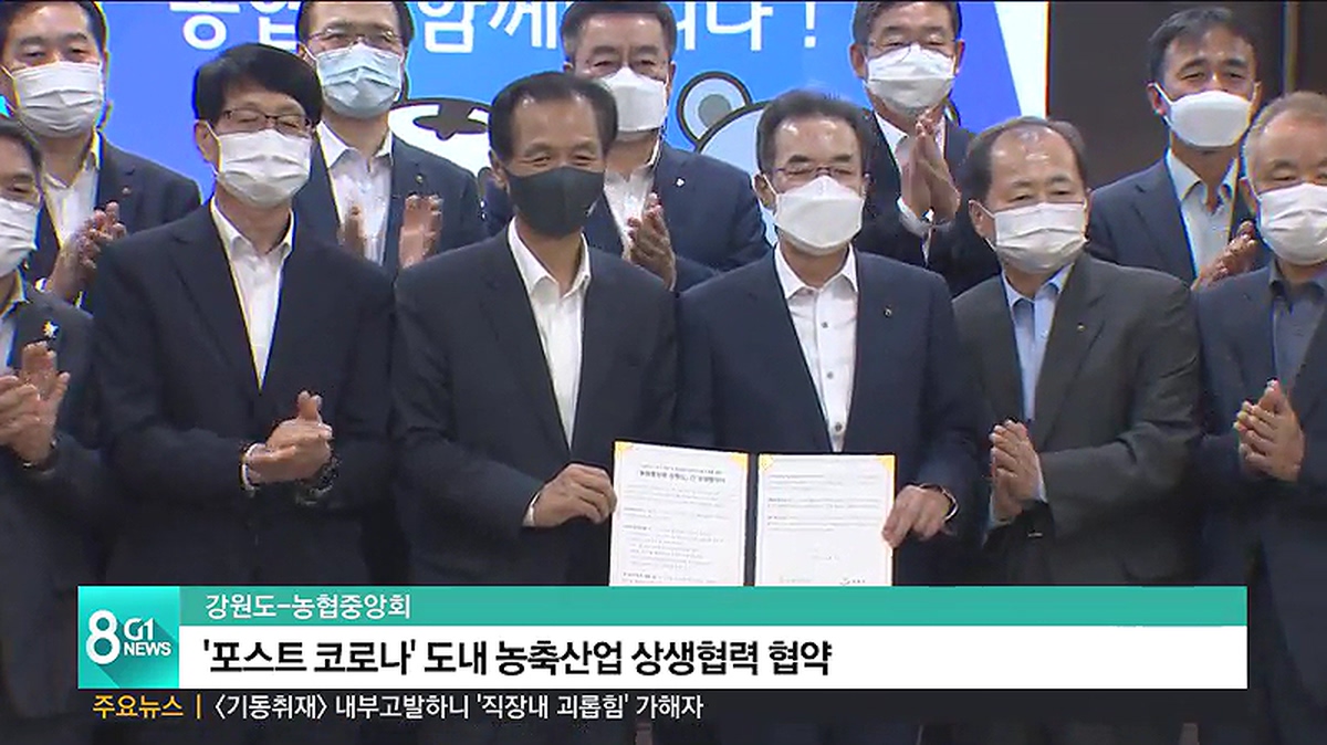 강원도와 농협중앙회는 서울에서 업무 협약을 맺고 포스트 코로나시대 선진화 된 농축산업 구축을 위한 상호 협력에 합의했습니다.