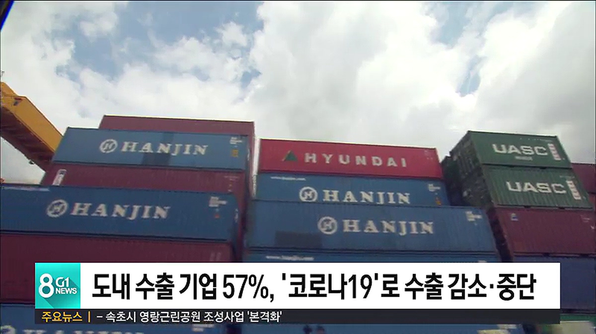 '코로나19' 여파로 도내 수출 기업의 절반 이상이 수출 감소나 중단을 겪고 있는 것으로 조사됐습니다.