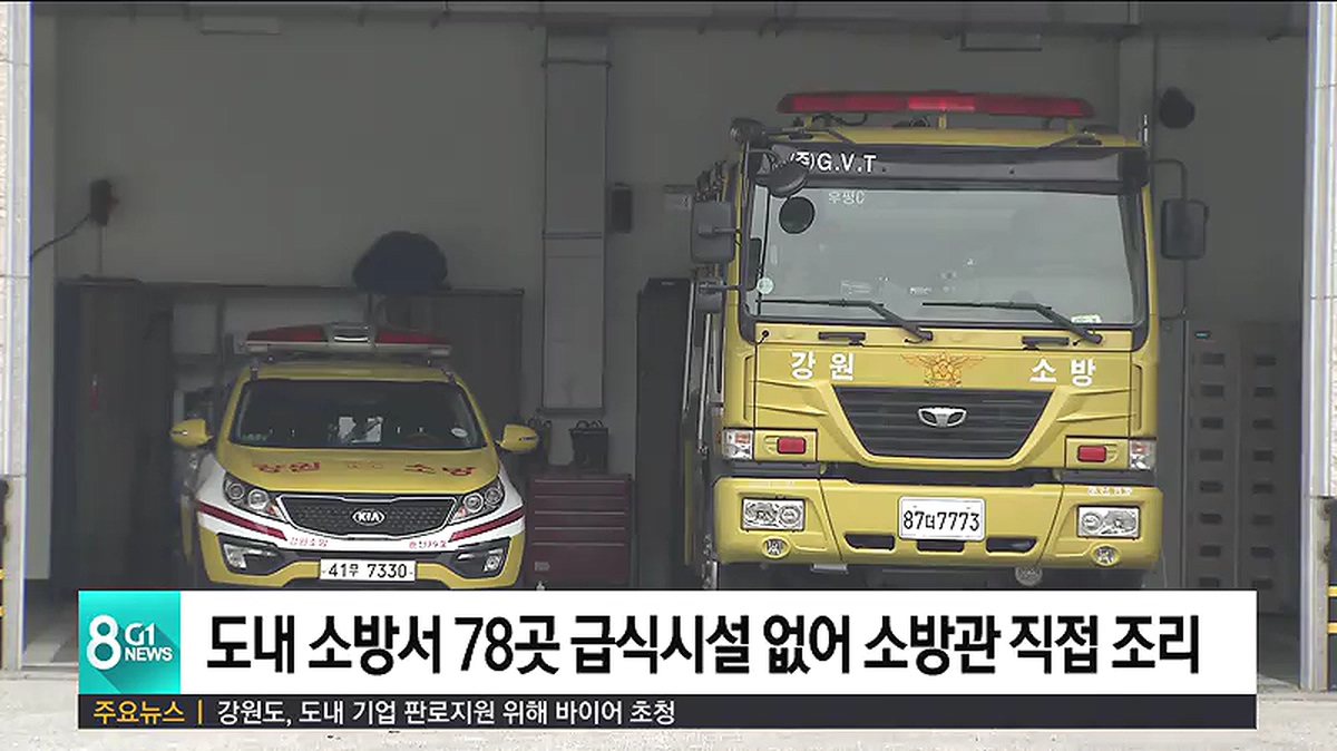 도내 소방서 60%가 급식 시설이 설치되지 않아 소방관이 직접 조리하거나 배달 음식을 이용하는 것으로 조사됐습니다.