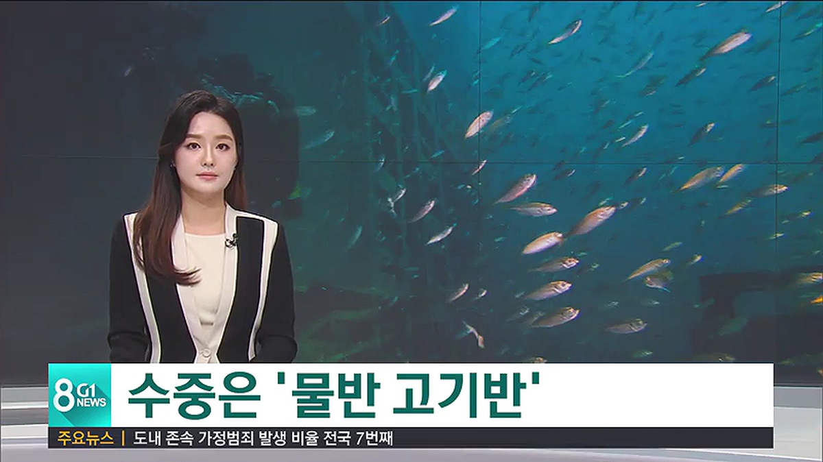 "수중공원에 들어가면 생각과는 다르게 정말 시야도 넓게 보이고요 물고기 떼가 정말 많습니다. 은빛으로 빛나고 있기 때문에 여러분도 한번 들어와 보시면 정말 감동할 거 같아요."