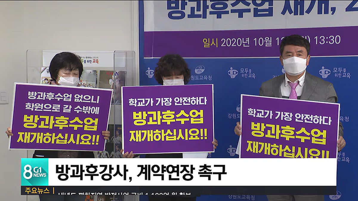 방과후강사노조 강원지부는 "방과후학교를 재개해 교육공백을 해소하고 방과후강사의 생계문제도 해결해야 한다"고 밝혔습니다.