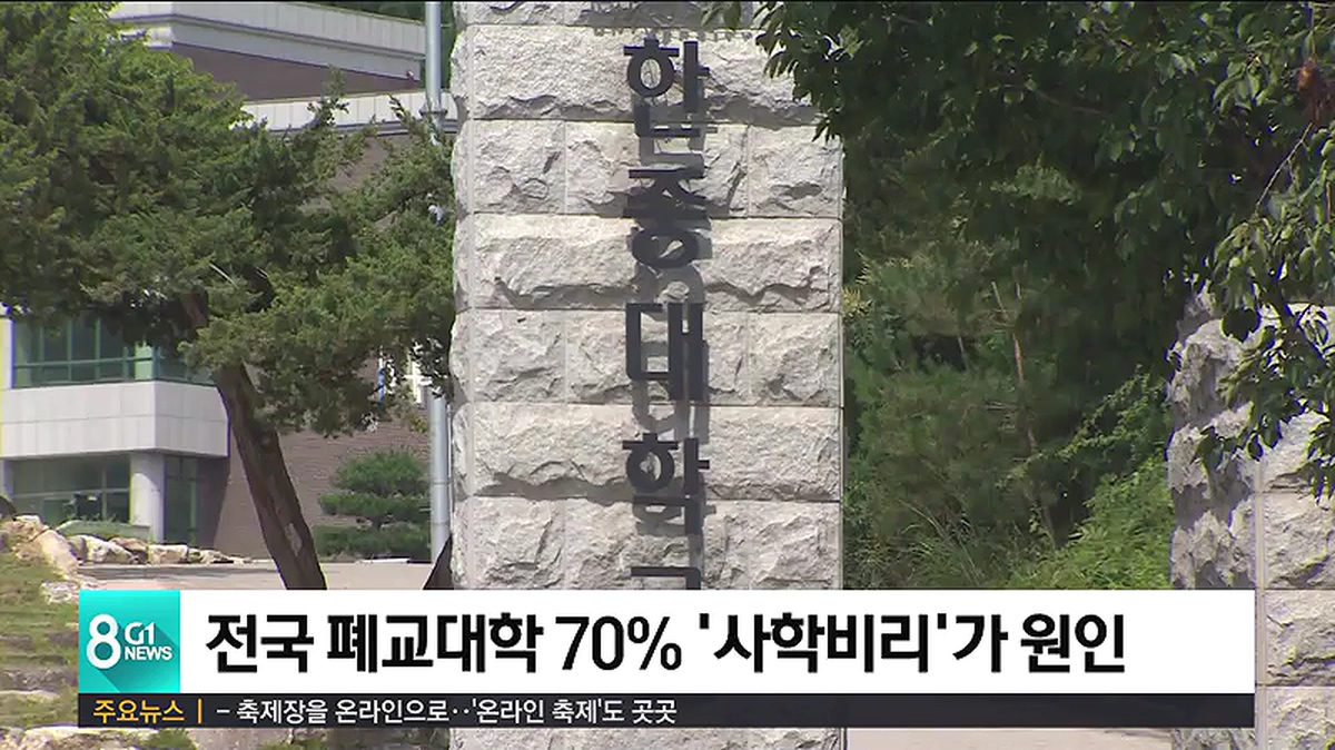 전국에서 폐교된 대학 중 70퍼센트가 사학비리와 연관돼 있는 것으로 조사됐습니다.
