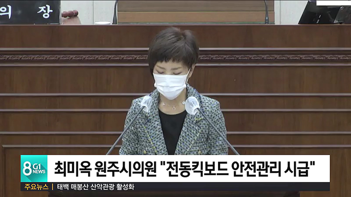 최미옥 원주시의원은 오늘 열린 제221회 임시회 5분 자유발언에서 법률 개정으로 13살부터 퍼스널 모빌리티 이용이 가능해졌다며,