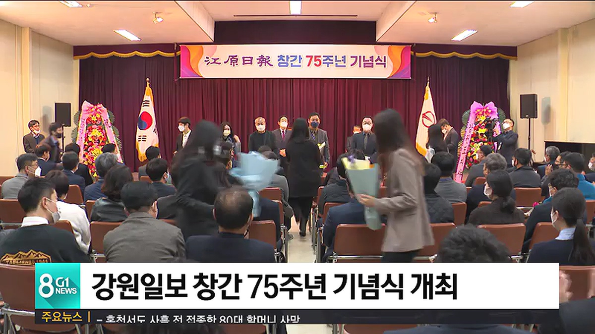 강원일보 창간 75주년 기념식이 강원일보 대강당에서 임직원 200여명이 참석한 가운데 열렸습니다.