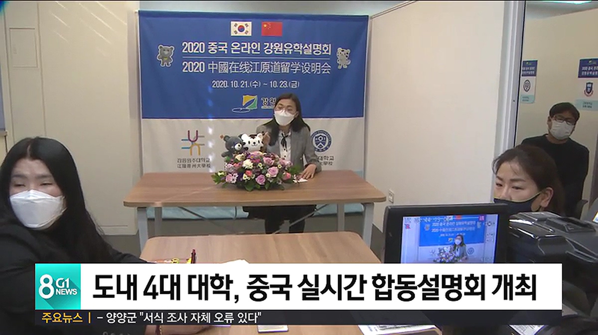 강릉원주대와 강원대 삼척캠퍼스, 경동대, 연세대 미래캠퍼스 등 도내 4개 대학은 오늘 강원도 경제진흥원에서 열린 2020년 제2차 중국 온라인 강원유학설명회에서 실시간 합동설명회를 개최했습니다.