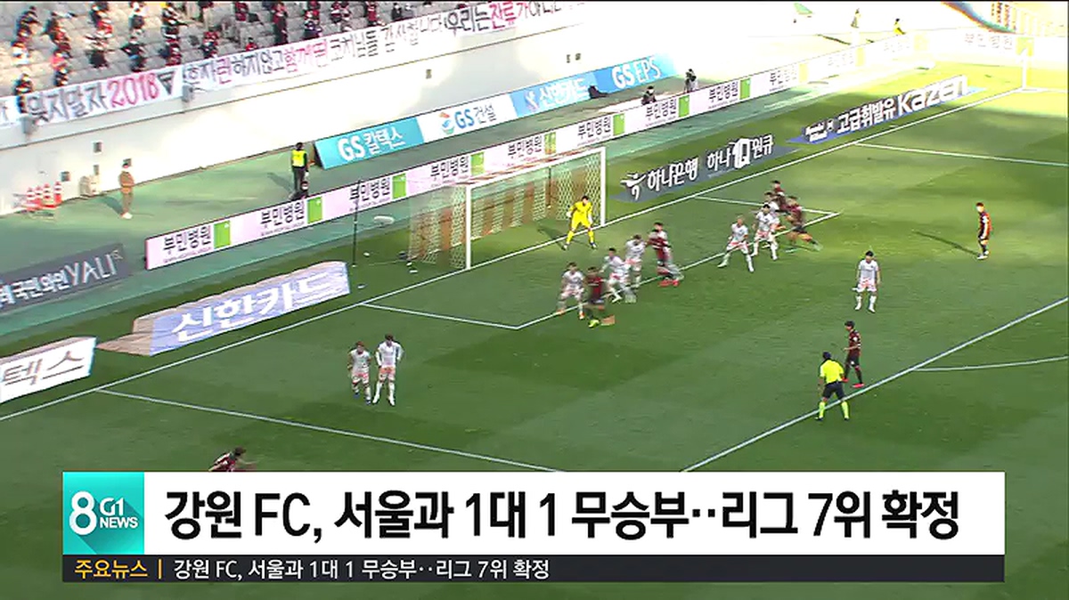 강원 FC, 서울과 1대 1 무승부..리그 7위 확정