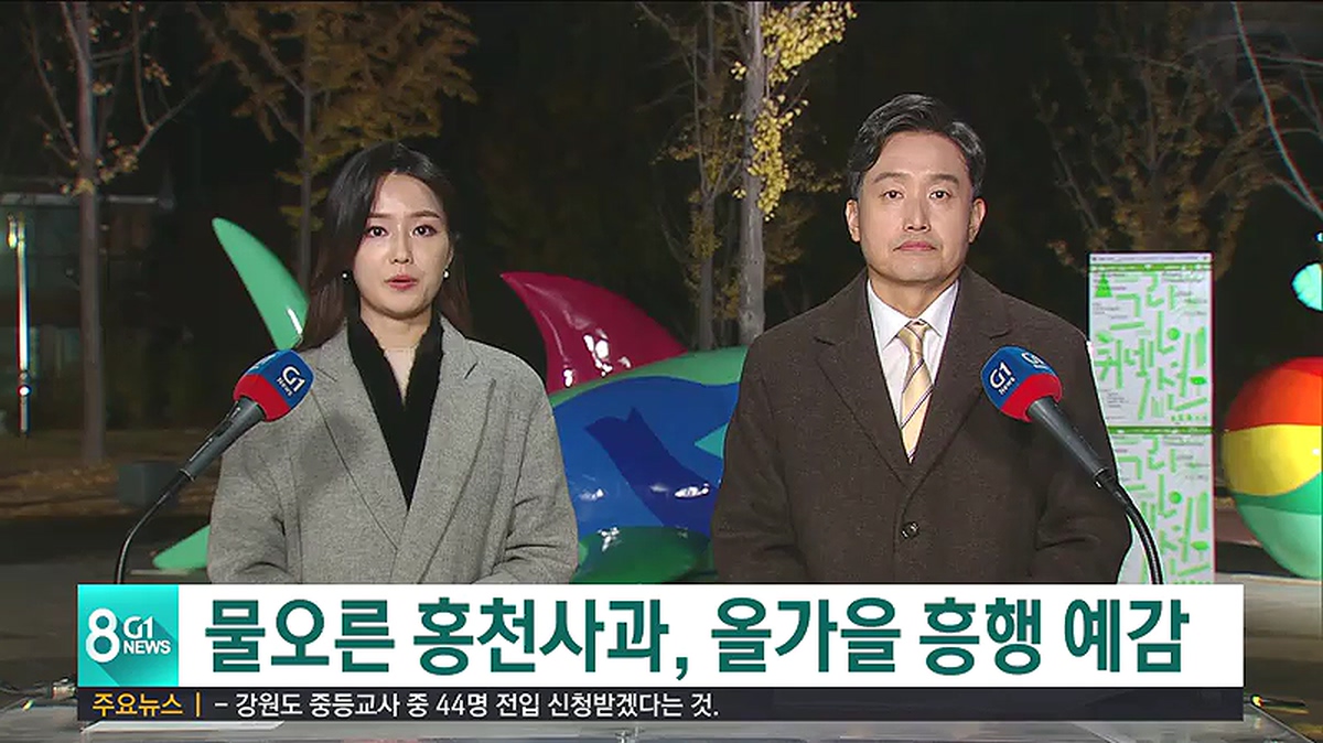 "특히 홍천사과가 일교차나 이런 것 때문에 남쪽지역보다는 (당도가) 월등히 높다고 생각하고요. 다행스럽게도 저희 홍천은 태풍 피해에서 조금 빗겨나가서 그나마 다른 지역에 비해선 양호한 거 같습니다."