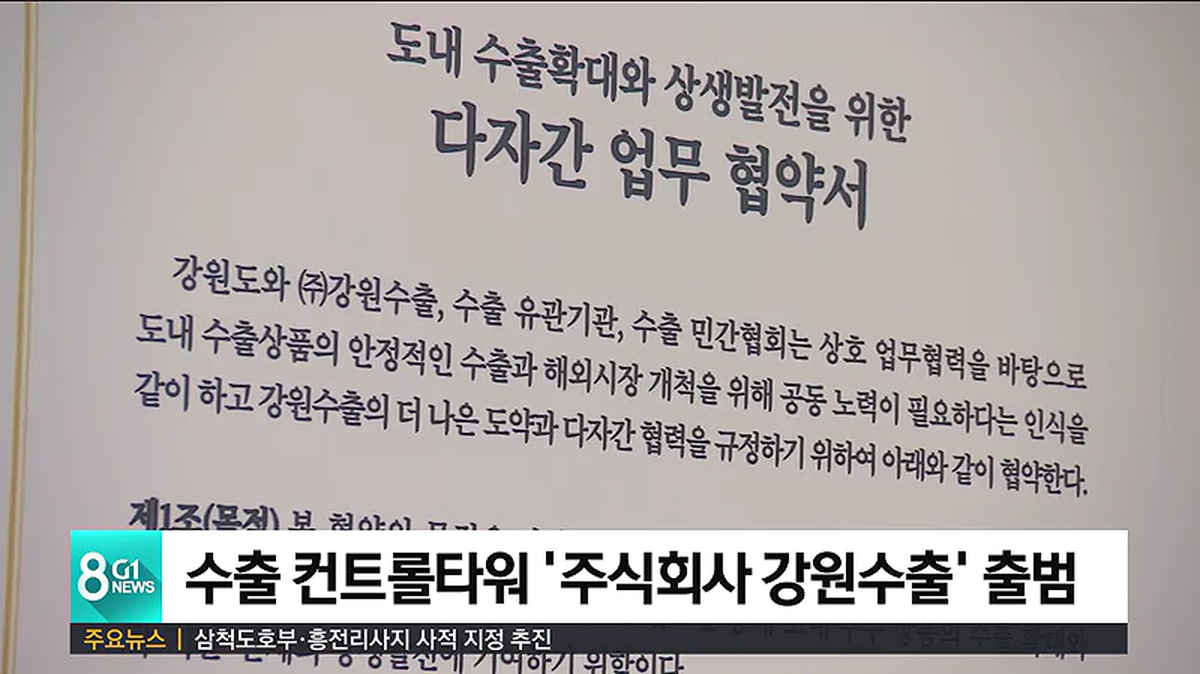 강원도와 주식회사 세중해운 등은 오늘(27일) '주식회사 강원수출'의 출범식을 열고, 비전 선포식과 다자간 업무협약 등을 진행했습니다.