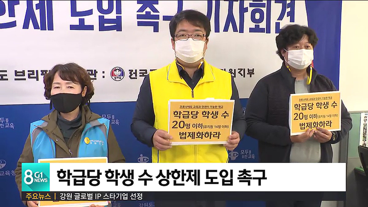 전국교직원노동조합 강원지부는 기자회견을 열고, 모든 학교의 학급당 학생 수를 20명으로 제한하고 이에 맞는 교사 수를 확보해야 한다고 주장했습니다.