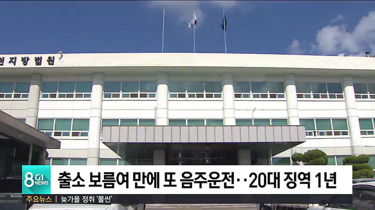 출소 보름여 만에 또 음주운전..20대 징역 1년