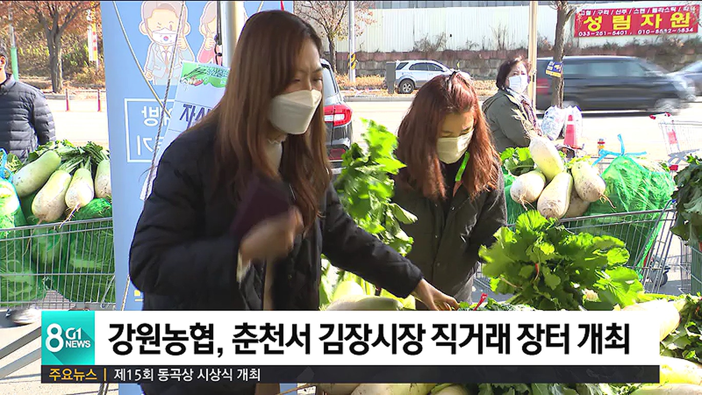 이번 행사는 춘천지역 농협 하나로마트 7곳에서 오는 15일까지 열리며, 절임배추와 김장채소 등을 20% 가량 저렴한 가격으로 구매할 수 있습니다.