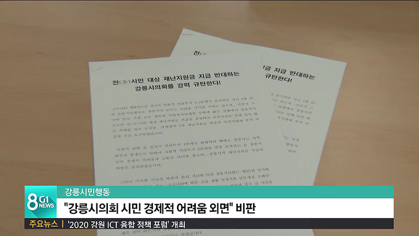 강릉시민행동은 강릉시의회가 코로나 19에 따른 긴급 생활 안정지원 일부개정 조례안을 보류하면서 전시민 대상 재난지원금 지급이 불확실하다면서 강릉시민이 겪는 경제적 어려움을 시의회가 외면하고 있다고 비판했습니다.