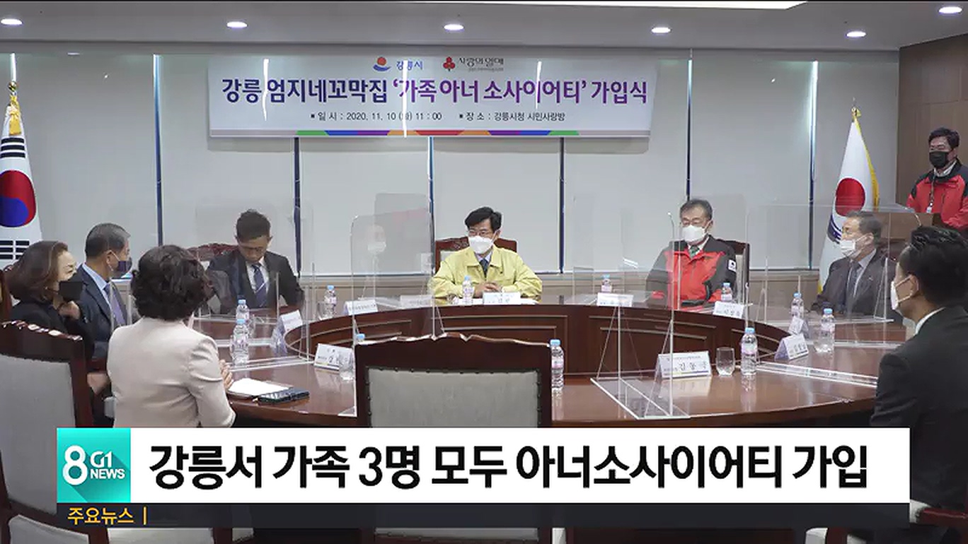 가입식은 오늘 강릉시청 시민사랑방에서 열렸으며, 식당을 운영하고 있는 김미자 씨와 최근영 씨, 아들이 각각 강릉 아너소사이어티 9번째와 10번째, 13원째 회원으로 가입했습니다.