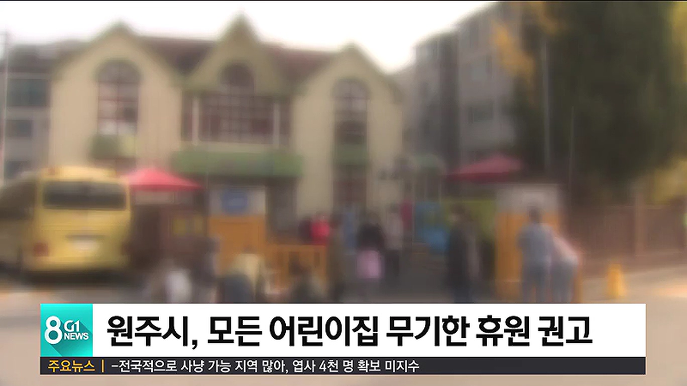 원주시는 최근 코로나19 확산에 따라 사회적 거리두기를 1.5단계로 격상했다면서 지역 내 모든 어린이집에 오늘부터 휴원 권고를 내렸습니다.