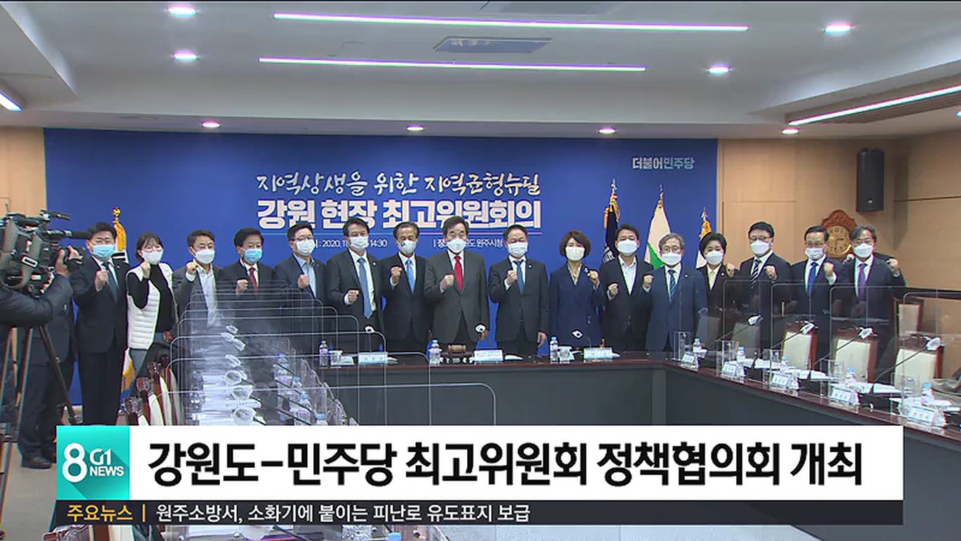 강원도와 더불어민주당은 오늘 원주시청에서 최고위원회 정책협의회를 개최하고, 지역주도형 뉴딜사업 추진과 도 현안에 대해 논의했습니다.