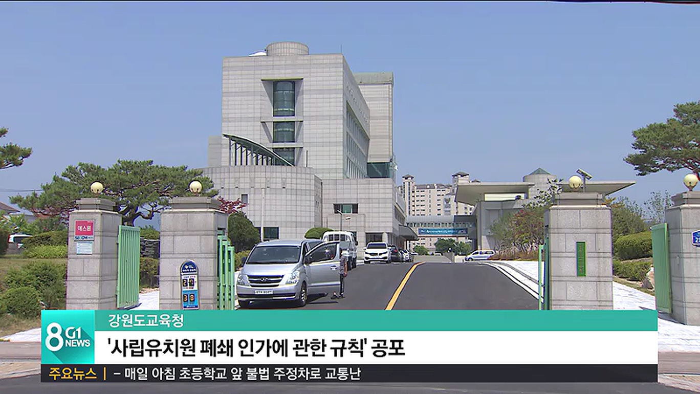 강원도교육청은 사립유치원의 폐쇄 시기와 학부모 동의, 전원 조치 계획 제출, 폐쇄 인가 신청 전 회계정산 완료 등을 담은 '강원도 사립유치원 폐쇄 인가에 관한 규칙'을 공포했습니다.
