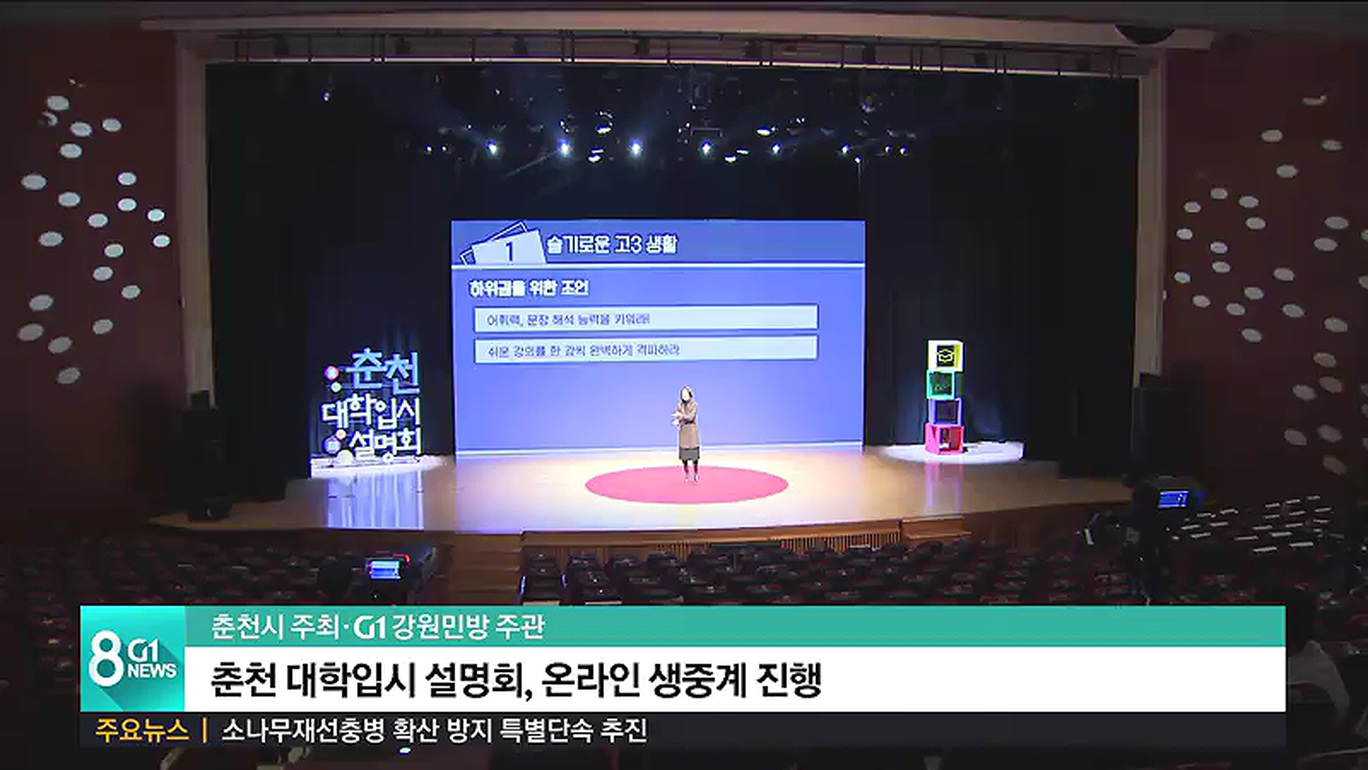 이번 춘천 입시설명회는 오는 28일 오전 11시부터 G1강원민방을 통해 방송될 예정입니다.