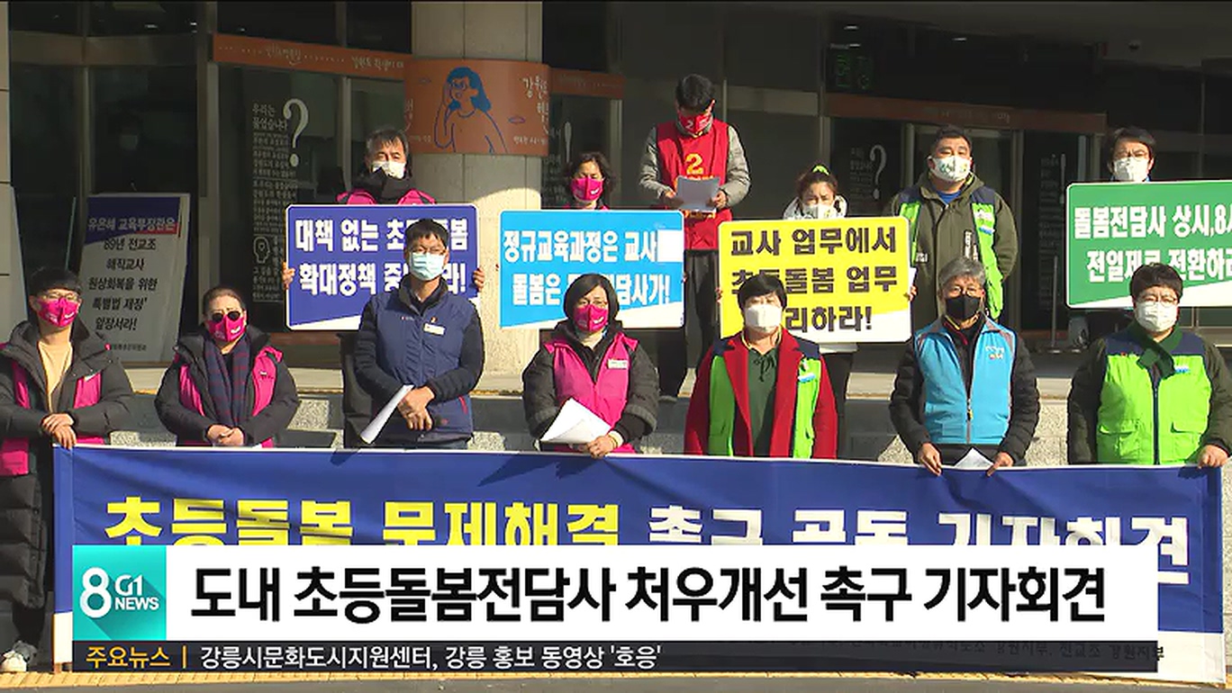 도내 초등 돌봄 전담사들은 오늘(23일) 강원도교육청 앞에서 처우개선을 요구하는 기자회견을 열었습니다.