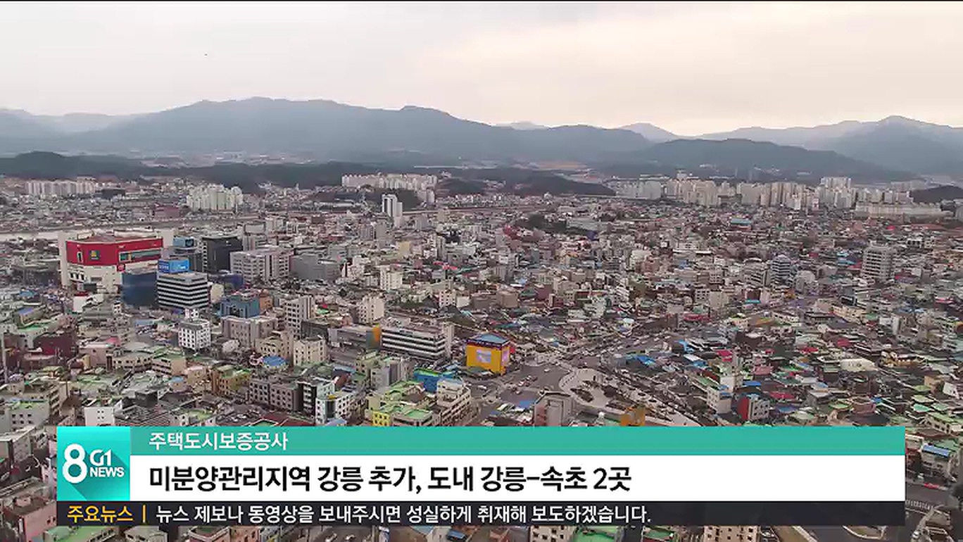 주택도시보증공사는 제51차 미분양관리지역 선정 결과를 발표하고, 강릉시를 추가 관리지젹으로 지정했습니다.