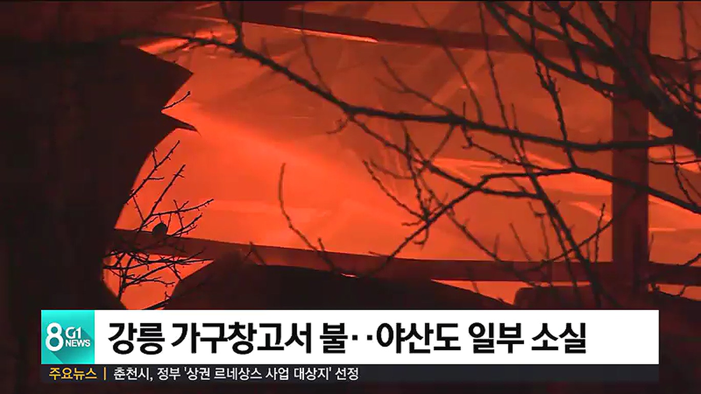 강릉 가구창고서 불..야산으로 번져 진화 중