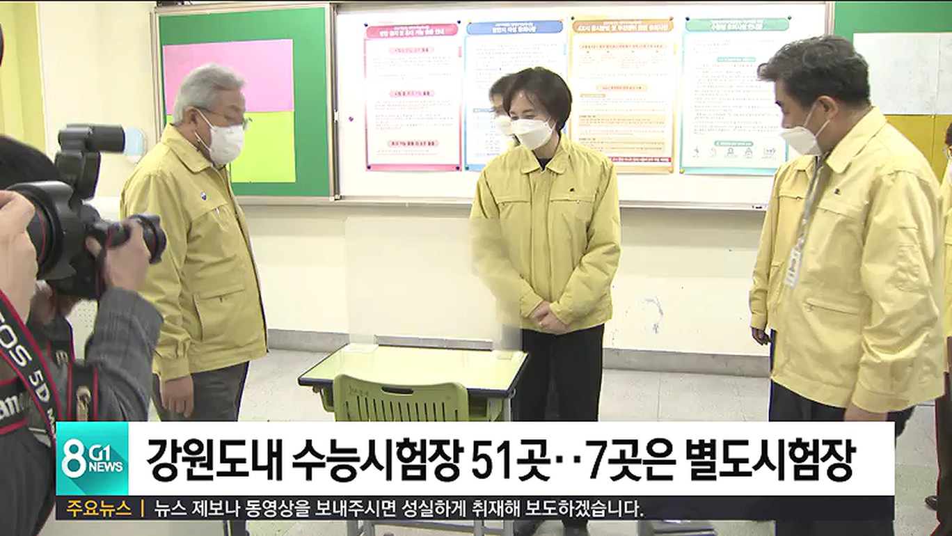 강원도내 수능 시험장은 51곳이며, 이 중에서 7곳은, 수능 전 자가격리대상으로 분류되는 학생이 발생할 것을 대비해 마련한 별도시험장입니다.