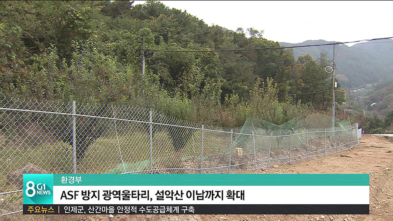 환경부는 최근 춘천과 화천, 인제 등에서 아프리카돼지열병에 감염된 멧돼지 사체가 잇따라 발견되고 있다면서 백두대간 등 확산 위험이 큰 지역에 광역울타리를 확대 설치한다고 밝혔습니다.